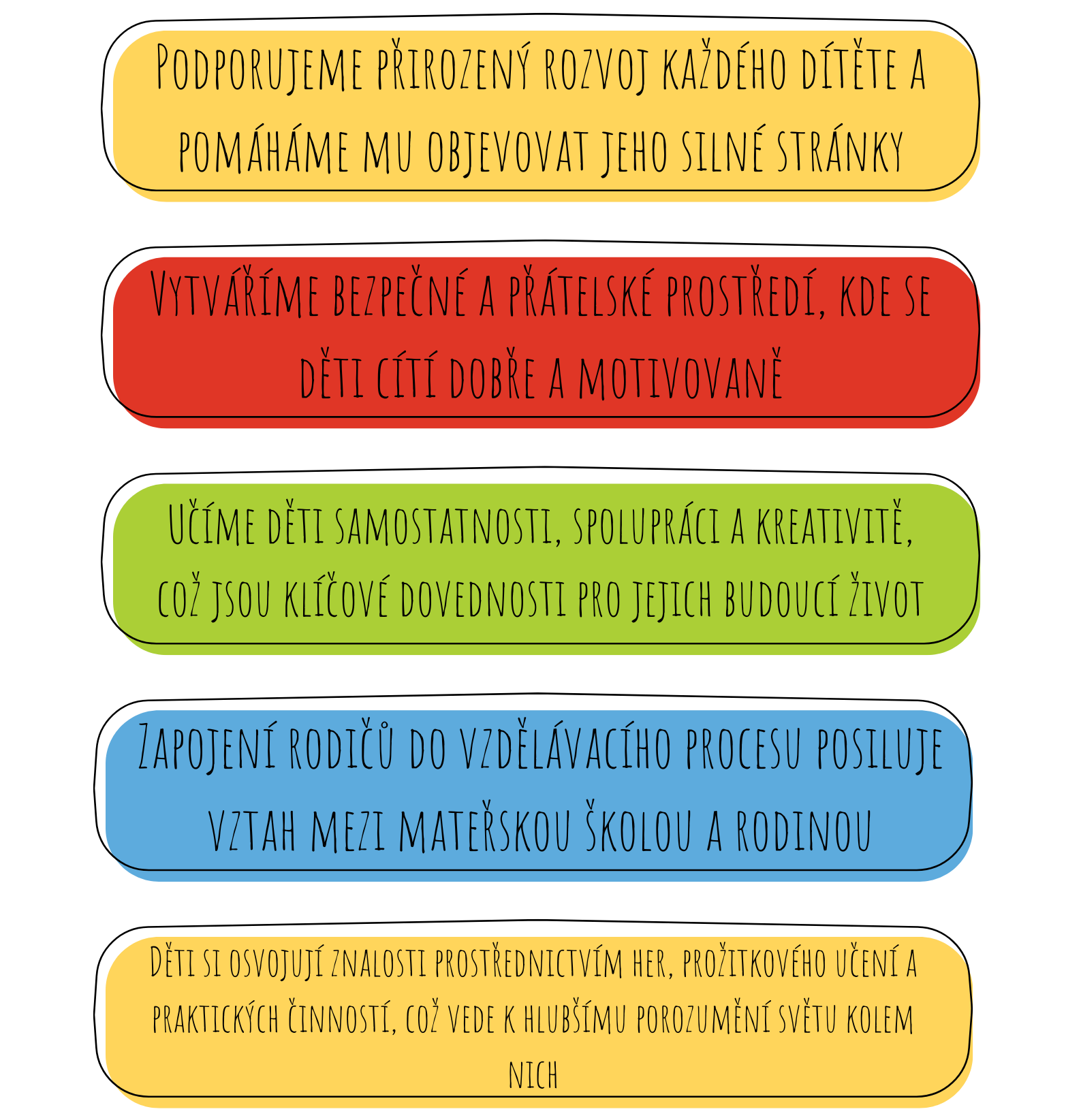 V naší mateřské škole věříme, že každé dítě je jedinečné a zaslouží si podporu v rozvoji podle svých individuálních potřeb. Proto jsme se rozhodli pracovat s akreditovaným vzdělávacím programem Začít spolu.